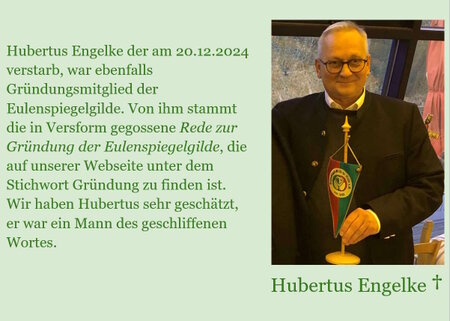 Auf dieser Seite werden ehemalige Mitglieder geehrt, die sich um die Eulenspiegelgilde verdient gemacht haben.